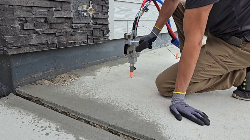 This project involves using a specialized concrete lifting process to raise and level the sunken concrete walkways, also known as a raised crossway, that lead to the house entrance. The process addresses the trip hazards created by uneven surfaces and the underlying issue of soil settlement. The project also includes careful work around the decorative rock landscaping to ensure the area is left clean and stable.